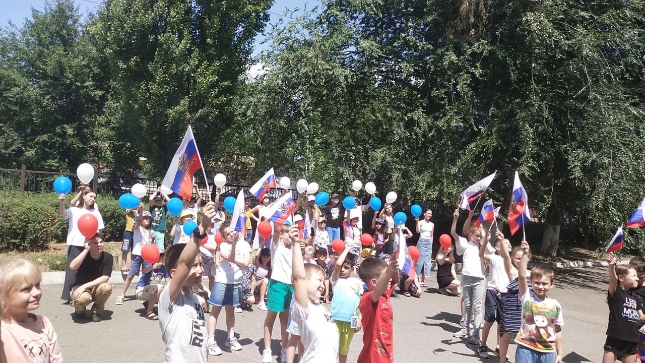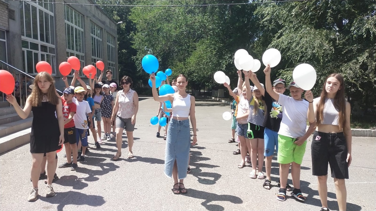 Вожатые нашего школьного лагеря провели флешмоб, посвященный Дню России.