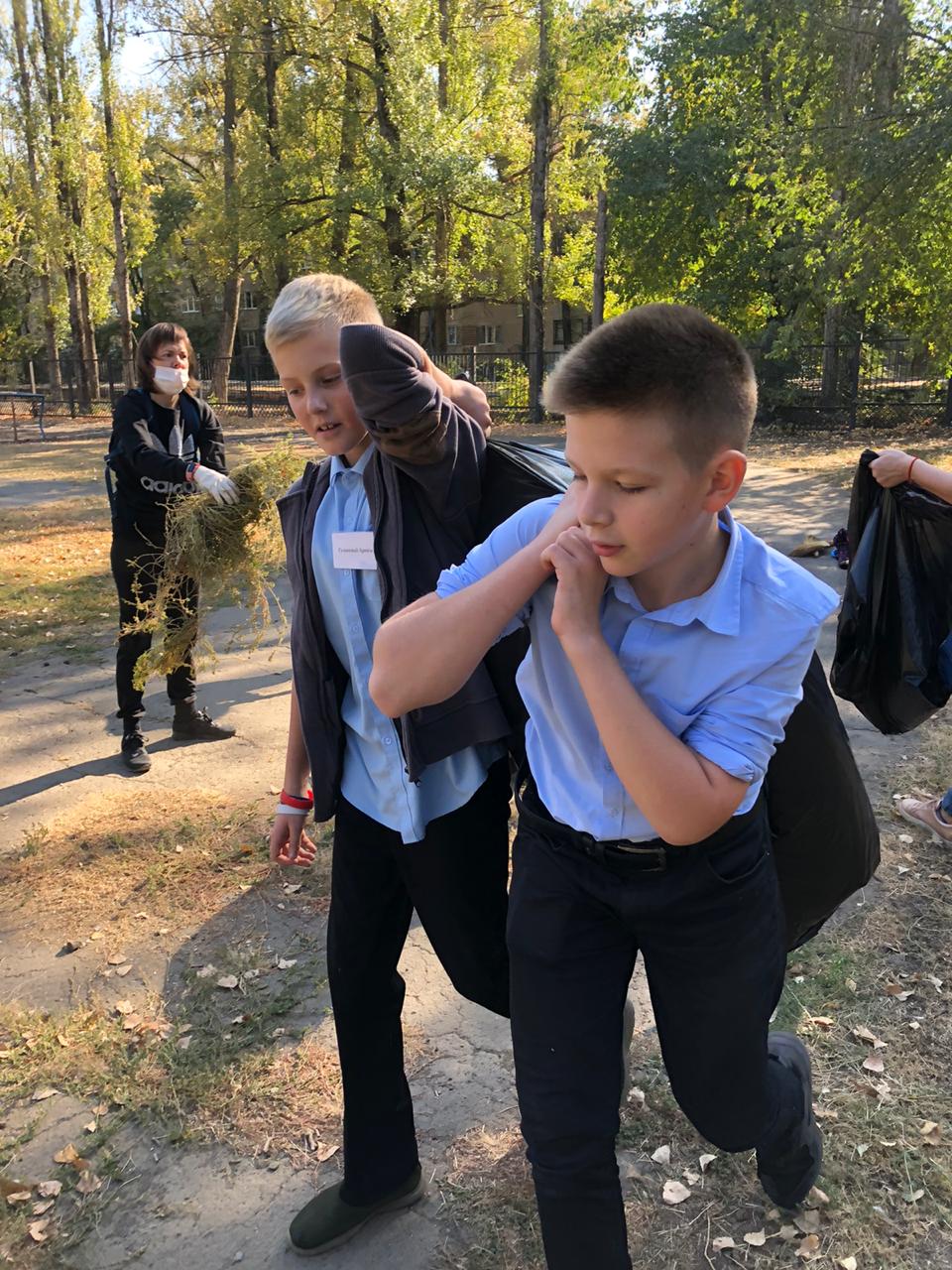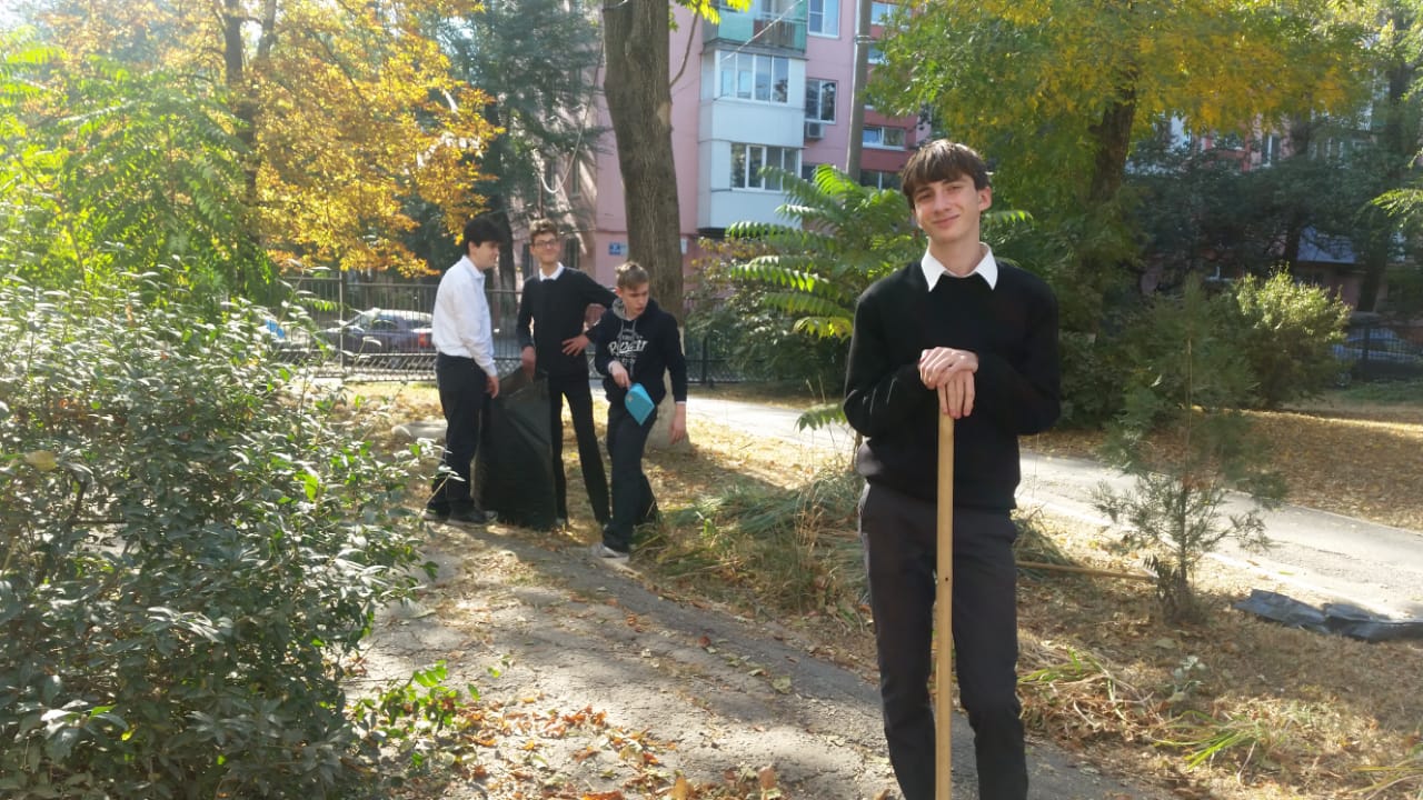 Большая уборка в которой приняли участие учащиеся более 500 человек. Ребята убирали закрепленные за ними территорию в разное время ,чтобы не нарушать правила поведения при пандемии. В результате уборки двор гимназии был освобожден от мусора и упавшей листвы , приведено в порядок 2 клумбы, высажены 5 деревьев и 8 кустарников