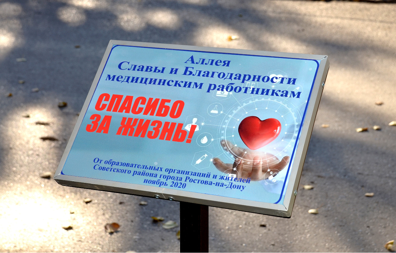 Сегодня 14 ноября на территории Областной больницы состоялось торжественное открытие Аллеи Славы и благодарности медицинским работникам «Спасибо за жизнь!». Вдоль Аллеи установлены баннеры с иллюстрациями творческих работ учащихся образовательных учреждений Советского района, детских садов и Дома детского творчества. В ходе мероприятия были высажены саженцы хвойных пород, которые украсили собой сквер вдоль улицы Благодатной.