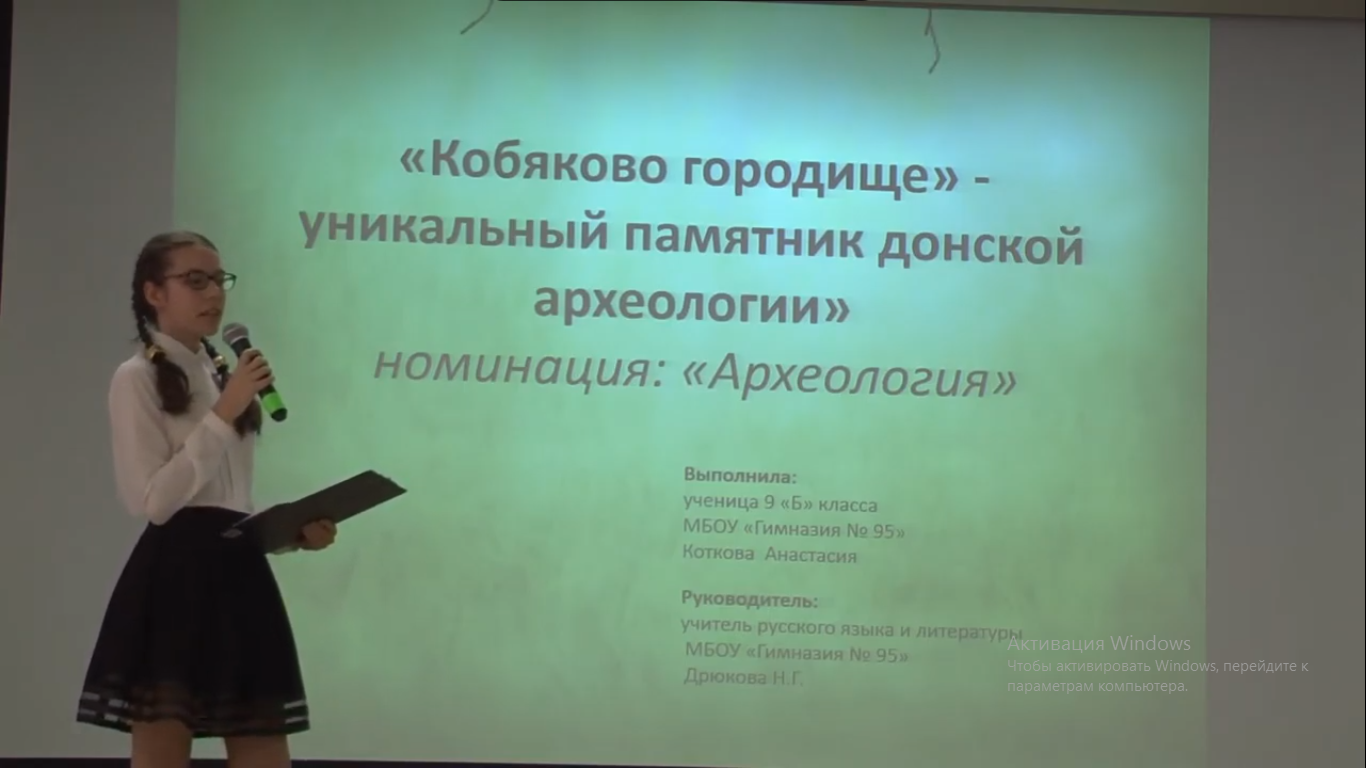 3. Подсекция «Археология», Коткова Анастасия, 9 «Б» класс, «Кобяково городище- уникальный памятник донской археологии», рук. Дрюкова Наталья Геннадьевна- 1 место.