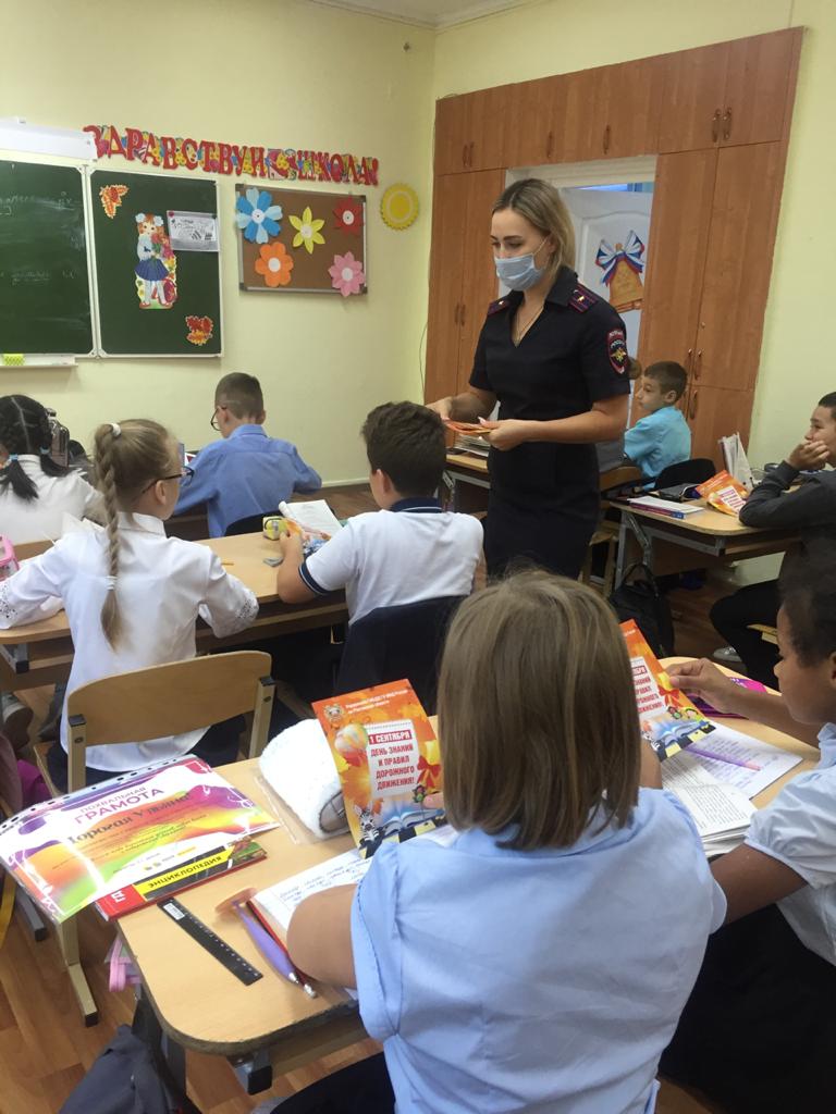 7. 09.21 Старший инспектор отдела пропаганды БДД Госавтоинспекции по Ростовской области майор полиции Тревгода Юлия Викторовна, провела с учащимися начальных классов профилактические беседы. Были просмотрены познавательные видеоролики и подарены памятки по ПДД, которые напомнили ребятам о необходимости соблюдать безопасность на проезжей части. Соблюдай правила дорожного движения пешеход, пассажир и водитель