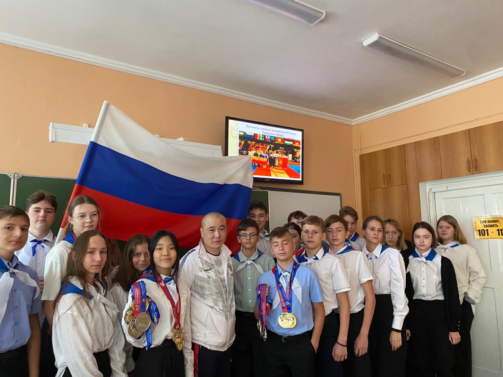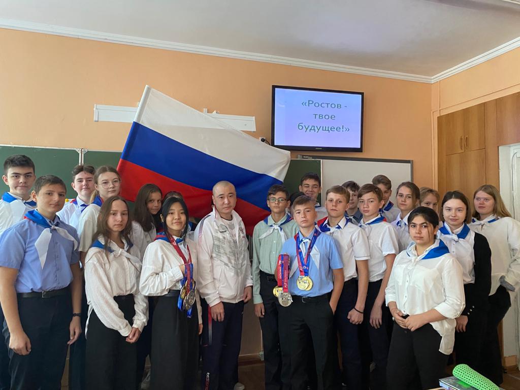 В 8 г классе прошёл классный час «Ростов — твоё будущее!» На уроке присутствовал папа одной из ученица, Хван Юлии — Хван Александр Робертович. Александр Робертович обладает чёрным поясом и 5 даном. Он тренер сборной России, президент Ростовской областной федерации тхэквондо ГТФ, старший тренер сборной Ростовской области. Занимается спортом с 5 лет, является многократным чемпионом Ростова и Ростовской области, чемпион России. Воспитал многих чемпионов России, Европы и Мира. Его воспитанники состоят в национальных Сборных страны ( Попюков Глеб, Хван Ю, Коваленко Виктория… ) имеют спортивные разряды и звания КМС и МС.
