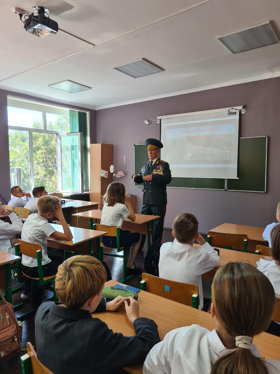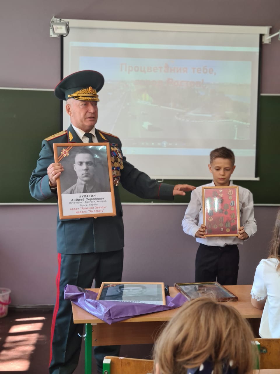 Приглашенный гость, генерал-майор Кулагин Александр Александрович, поделился с ребятами своими жизненными историями.