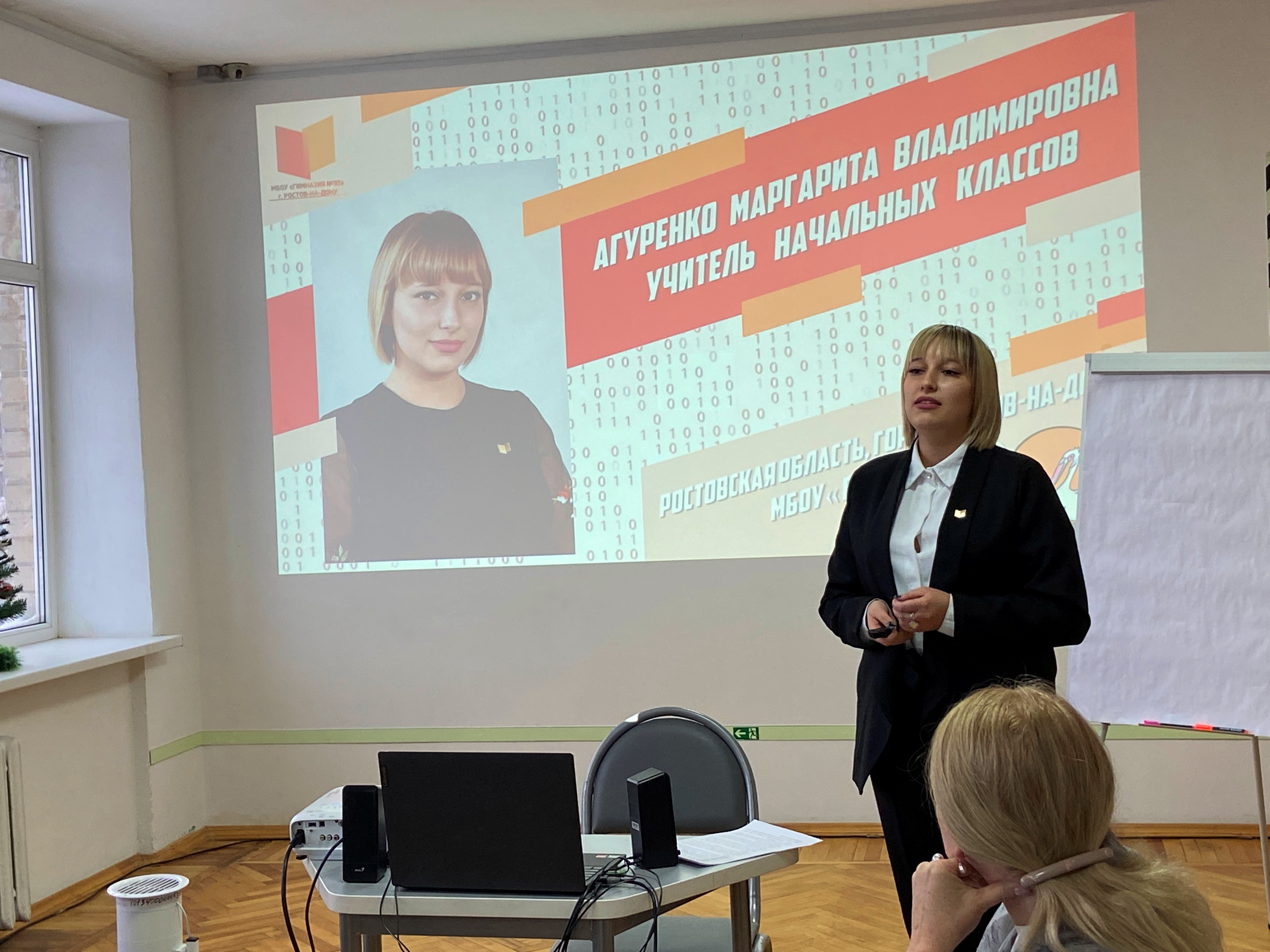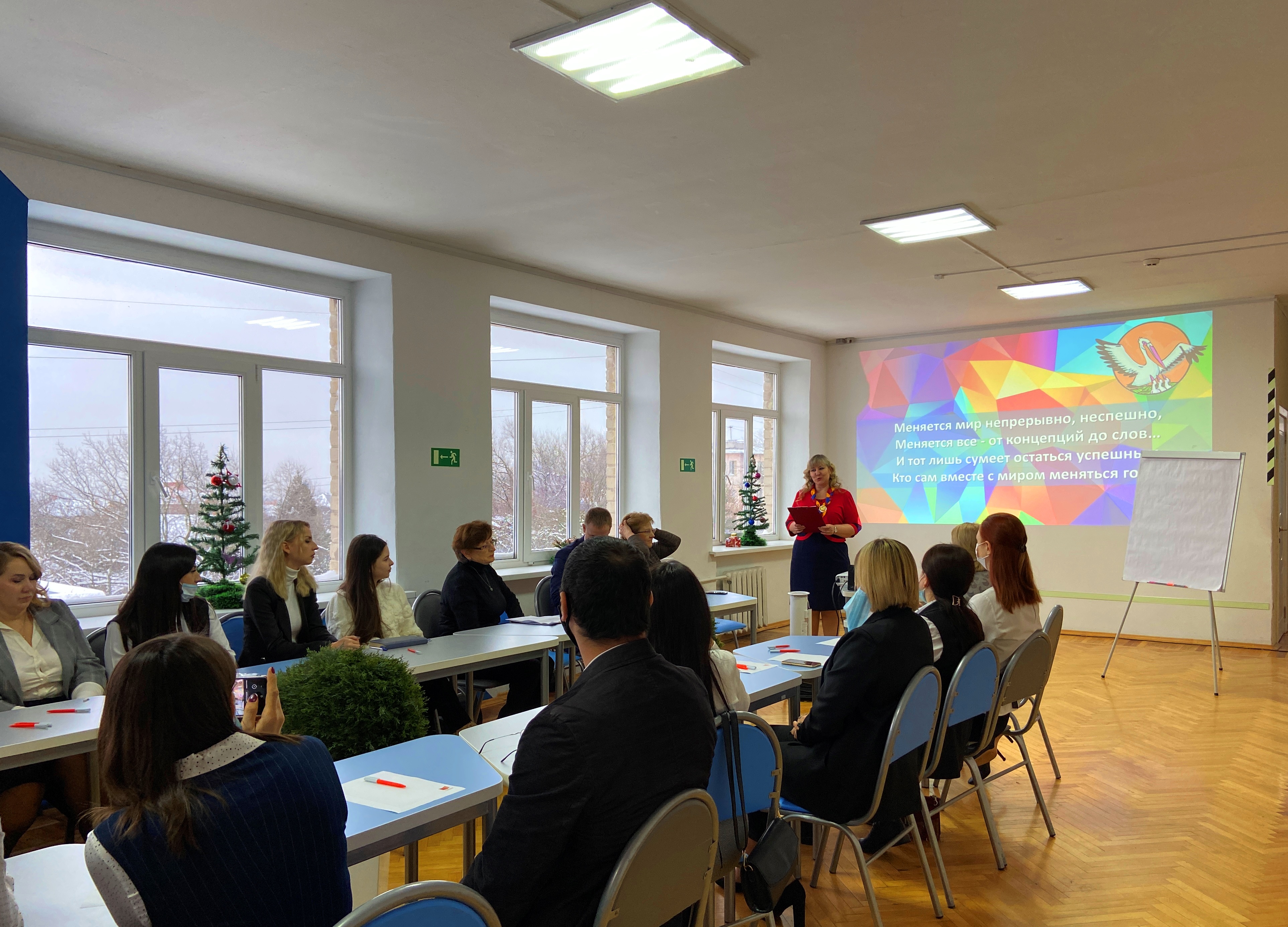 28 декабря в МБОУ «Гимназии №95» прошел круглый стол, посвященный участию педагогов в конкурсе профессионального мастерства «Учитель года». С приветственным словом выступила Ольга Александровна Назарчук, начальник отдела образования Советского района. Ольга Александровна поздравила победителей муниципального этапа конкурса «Учитель года 2022» Агуренко Маргариту Владимировну, учителя начальных классов Гимназии № 95, победителя в номинации «Педагогический дебют», и Далогланян Наиру Владимировну, учителя английского языка Школы №115 – 3 место в номинации «Учитель года».