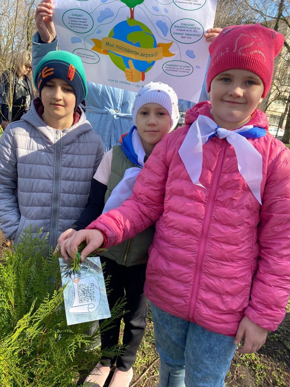В рамках праздника » Дня древонасаждения» была высажена аллея Эколят, где посадили 12 деревьев: клёны, ясени, березы, липы, дубы и две туи. А также кустарники : розы, сирень, черемуха,ферзиция. К каждому растению был прикреплённ QR код , при наведении на него можно получить подробную информацию о растении.