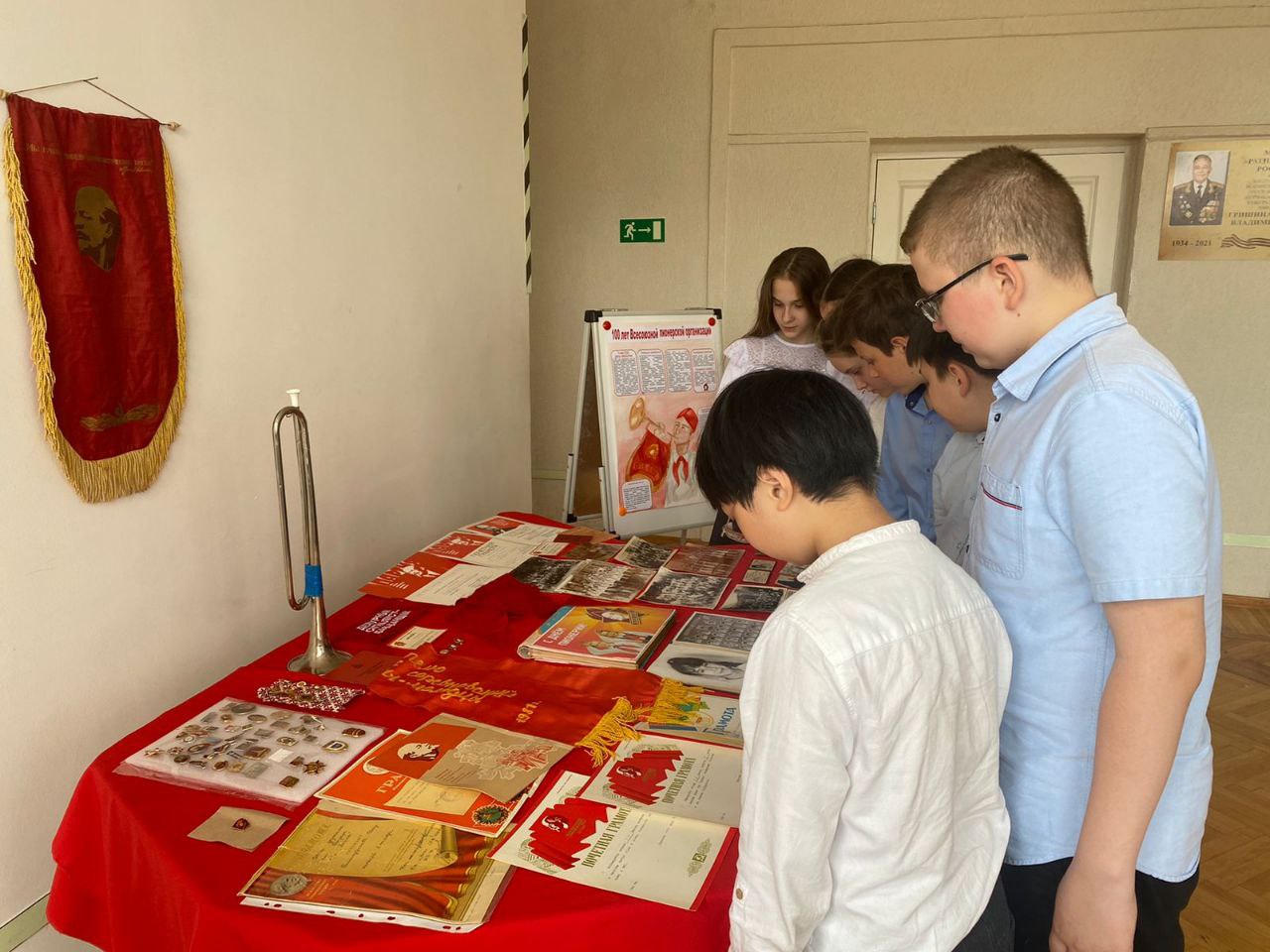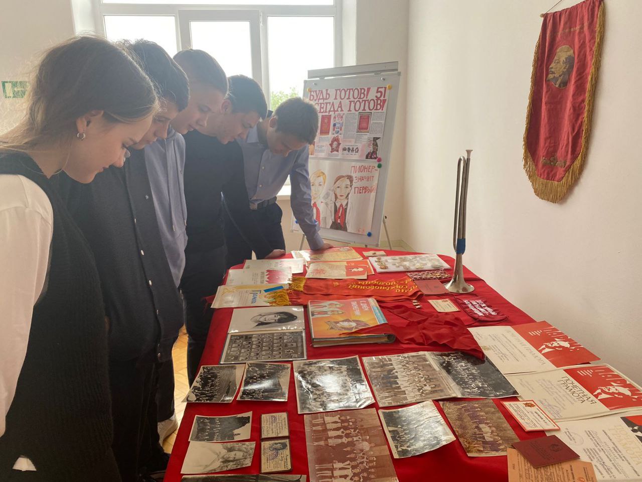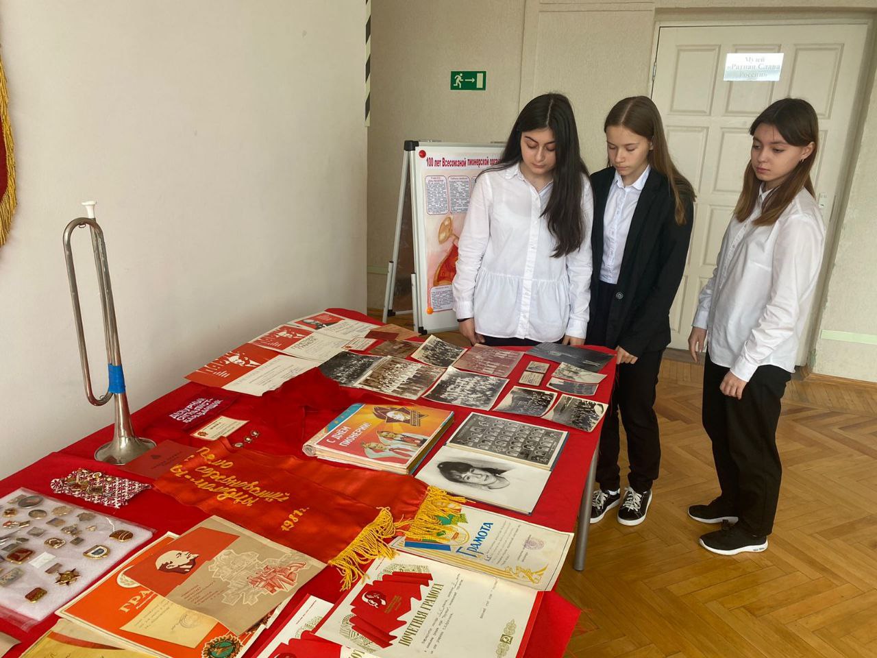 В связи с этой датой в нашей гимназии была организована выставка атрибутики пионерской организации , на которой учащиеся познакомились с историей возникновения организации и деятельностью пионеров.