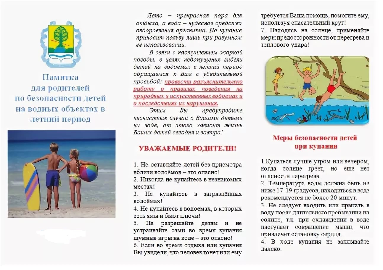 Уважаемые родители (законные представители)! В связи с наступлением жаркой погоды, в целях недопущения гибели детей на водоемах в летний период обращаемся к Вам с убедительной просьбой: провести разъяснительную работу о правилах поведения на природных и искусственных водоемах и о последствиях их нарушения; не допускайте самостоятельного посещения водоемов детьми, не оставляйте детей у воды без присмотра. Этим Вы предупредите несчастные случаи с Вашими детьми на воде, от этого зависит жизнь Ваших детей сегодня и завтра. Информируем Вас , что в Советском районе только одно разрешенное место для купания в водоеме — Пляж «Каррера» на искусственном водоеме (ул. Пескова, 17). Не допускайте купания детей в запрещенных местах!