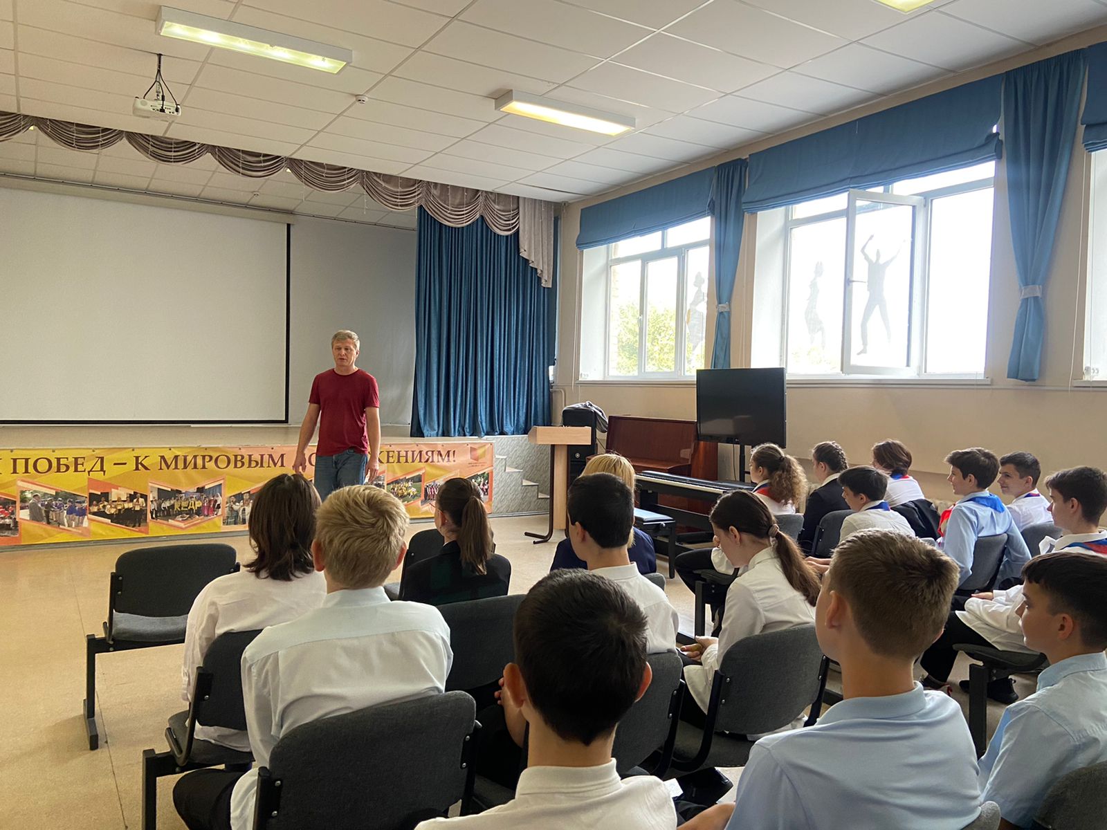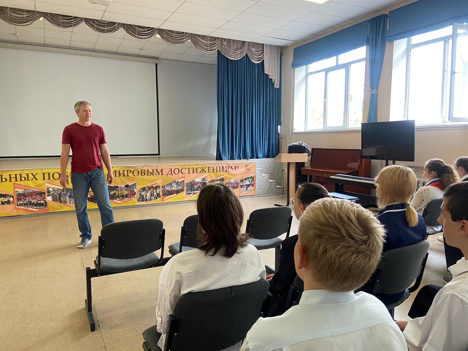 Директор Детской технической школы «Сфера», главный региональный эксперт по компетенции «Программные решения для бизнеса», руководитель учебно-методического центра дополнительного профессионального образования «Сфера» Евгений Николаевич Троицкий провел беседу-лекцию на тему «Цифровая трансформация современного общества. Возможности и вызовы». Были затронуты вопросы изменения общественных отношений в связи с развитием технологий искусственного интеллекта, больших данных , цифровизации сферы государственных и экономических отношений. Совместно с учащимися гимназии были сделаны выводы о необходимости индивидуальной переориентации каждого современного человека в направлениях развития наиболее актуальных и востребованных в эпоху грядущих перемен. Запланированы дальнейшие мероприятия по знакомству школьников с тенденциями и задачами современности и ближайшего будущего.