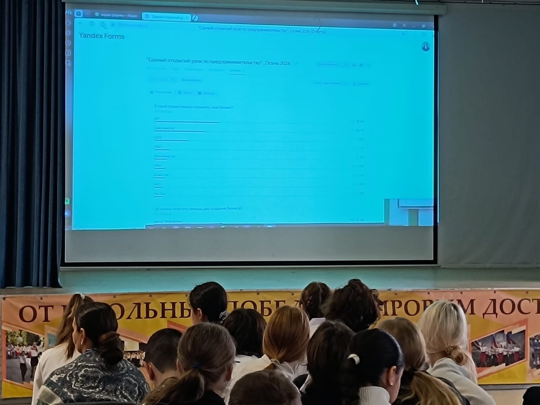 Учащиеся 9-11 классов узнали новое о разновидностях бизнеса, поняли основы маркетинга и финансового планирования, а так же получили массу полезной информации. Лектор дала множество полезных советов. Ученики подкрепили свои знания прохождением теста, с которым большинство справились без труда!