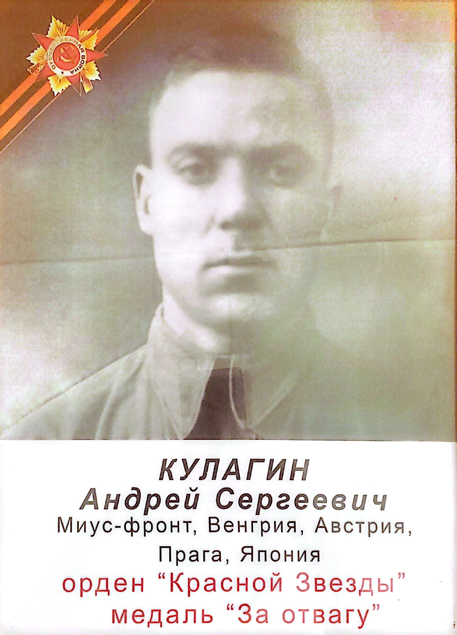 Сегодня ребята вспомнили кем была развязана война, на какие территории распространилась эта трагедия , сколько было погибших. Почтили память героев СССР , участвовавших в этой войне. О таком Герое рассказал ученик Гимназии 95 Кулагин Мирон. Кулагин Мирон — правнук Кулагина Андрея Сергеевича. Кулагин А.С. прошёл всю войну от первого до последнего дня, освобождал Венгрию, Австрию , Чехословакию и закончил свой боевой путь в Японии. Был награждён орденом «Красной Звезды», медалью «За отвагу», а также медалями за взятие Будапешта, Вены, Праги и за победу над Японией.