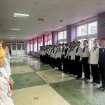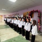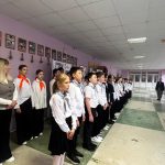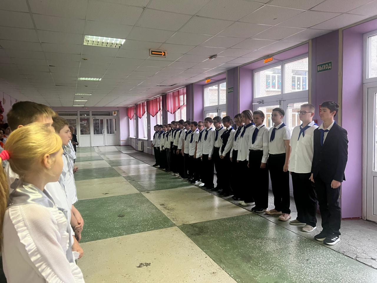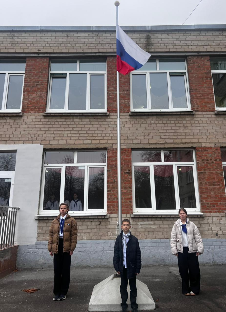 Почетное право поднять государственный символ страны доверено учащимся 7 «Б» классу – Маслюченко Марии и Кулагину Мирону, отличникам учебы и победителям международных танцевальных конкурсрв. А так же ученику 5 «Б» класса Чурилову Артёму, активному участнику всех школьных мероприятий.